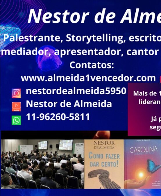 Há mais de oito anos, vêm ministrado cursos, palestras e escrevendo artigos para todos os seguimentos da sociedade. Têm participado de diversos programas de Rádio e TV. Sempre ajudando as pessoas a superar os seus limites. Escritor, colunista, conselheiro e autor dos livros, “COMO FAZER DAR CERTO” e “DE MENINO DE RUA A EXECUTIVO”. Em breve lançara um novo livro ÉTICA,UMA ESCOLHA DE VIDA. Tem artigos publicados em mais de 300 canais de comunicação no Brasil e Exterior. O palestrante tem o dom de falar ao coração das pessoas. É difícil alguém não mudar o comportamento após participar de uma palestra com Nestor de Almeida.